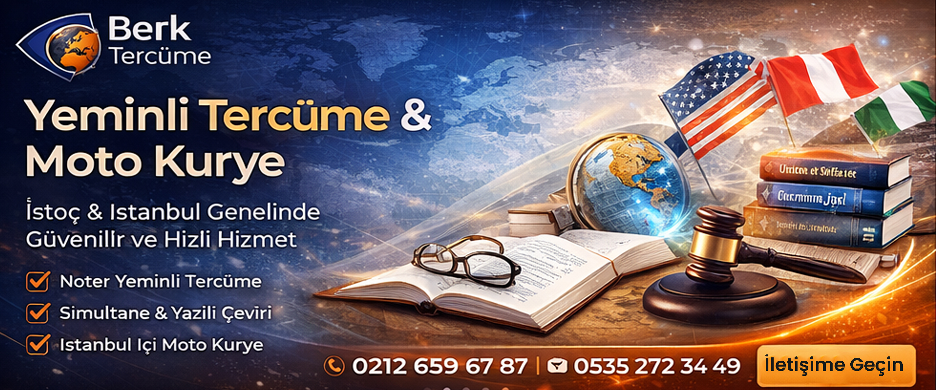Berk Tercüme, İstanbul’da noter yeminli tercüme, hukuki tercüme, tıbbi tercüme, teknik tercüme ve web sitesi tercümesi alanlarında hizmet veren köklü bir tercüme bürosudur. İstoç ve Bağcılar başta olmak üzere İstanbul genelinde hızlı teslimat ve moto kurye desteği sunar.