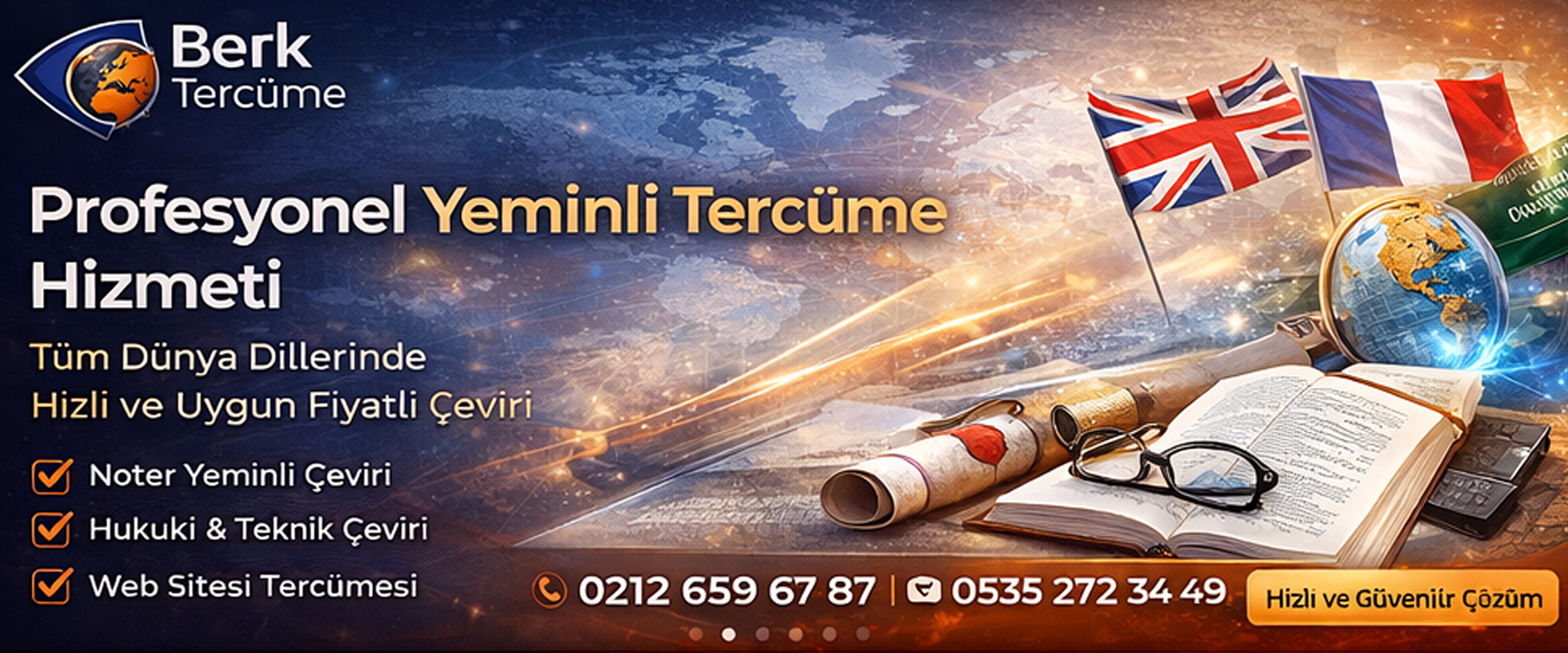 Berk Tercüme olarak; insana, teknolojiye ve kaliteye yatırım yaparak profesyonel çeviri sektöründe sürdürülebilir bir büyüme hedefliyoruz. Uzman tercüman kadromuz, gelişmiş çeviri altyapımız ve kalite kontrol süreçlerimiz sayesinde hem bireysel hem de kurumsal müşterilerimize hızlı, güvenilir ve hatasız tercüme hizmetleri sunuyoruz.